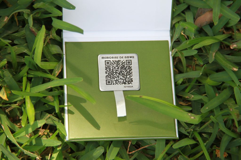 La placa Memorias de Amor, vienen en una caja de cartón imantado, en tono verde de 9 cm x 9 cm, con el logo impreso en la tapa. En la parte de adentro se encuentra la placa encajada, jale la cinta para sacarla con facilidad. En la contratapa encontrará las instrucciones.